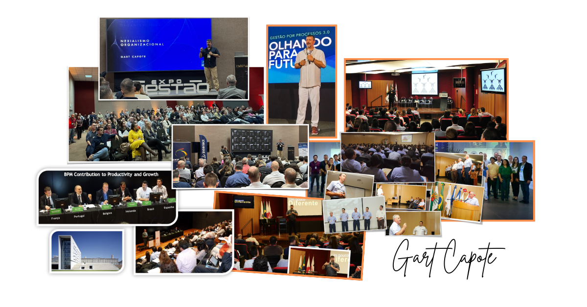 Envolvido com a divulgação dos benefícios e desafios de BPM desde 2005, ao idealizar e fundar a ABPMP Brasil em 2008, Gart Capote assumiu a missão de protagonizar a sensibilização de lideranças e equipes em centenas de eventos nos últimos anos.